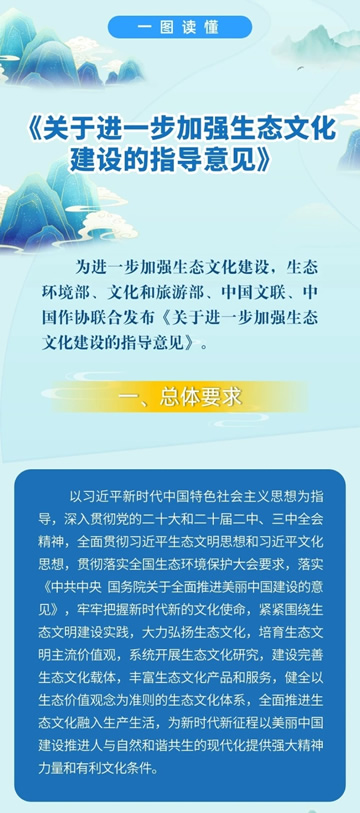 為深入學習貫徹落實習近平生態文明思想和習近平文化思想,進一步加強生態文化建設,近日,生態環境部、文化和旅游部、中國文聯、中國作協四部門聯合印發《關于進一步加強生態文化建設的指導意見》(以下簡稱《意見》)。