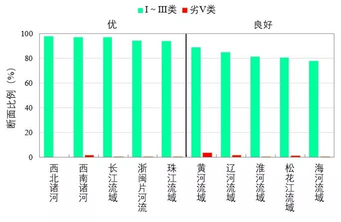 1-12月,長江、黃河、珠江、松花江、淮河、海河、遼河等七大流域及西北諸河、西南諸河和浙閩片河流水質優良(Ⅰ~Ⅲ類)斷面比例為87.0%,同比上升2.1個百分點;劣Ⅴ類斷面比例為0.9%,同比下降0.8個百分點。主要污染指標為化學需氧量、高錳酸鹽指數和總磷。其中,長江流域、西北和西南諸河、浙閩片河流和珠江流域水質為優;黃河、遼河和淮河流域水質良好;松花江和海河流域為輕度污染。