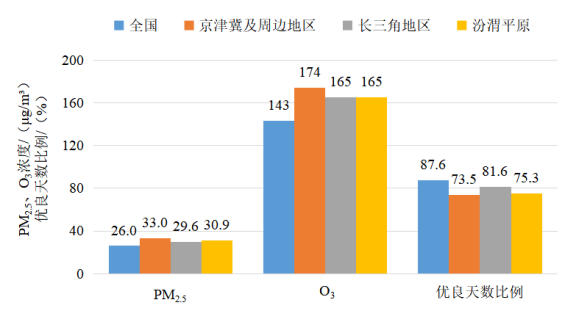 圖3 2025年1—9月全國(guó)及重點(diǎn)區(qū)域空氣質(zhì)量比較